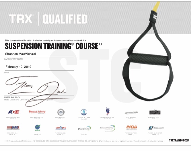 At my studio, I currently teach Zumba, Barre and PiYo. I signed up for TRX Training, which is suspension training using your body weight. One of the main reasons I signed up for TRX is that I have all of the equipment (which isn’t cheap) just sitting in my studio collecting dust, so I figured why not, I’m just gonna go for it! At least that was my attitude two months ago when I signed up.
